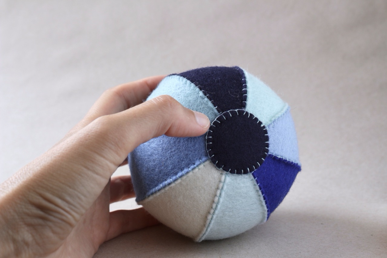 Als Neugierobjekt für die Kleinsten ist der blaue Filzball ideal, um die Aufmerksamkeit auf sich zu ziehen und die Fein- und Grobmotorik zu fördern.