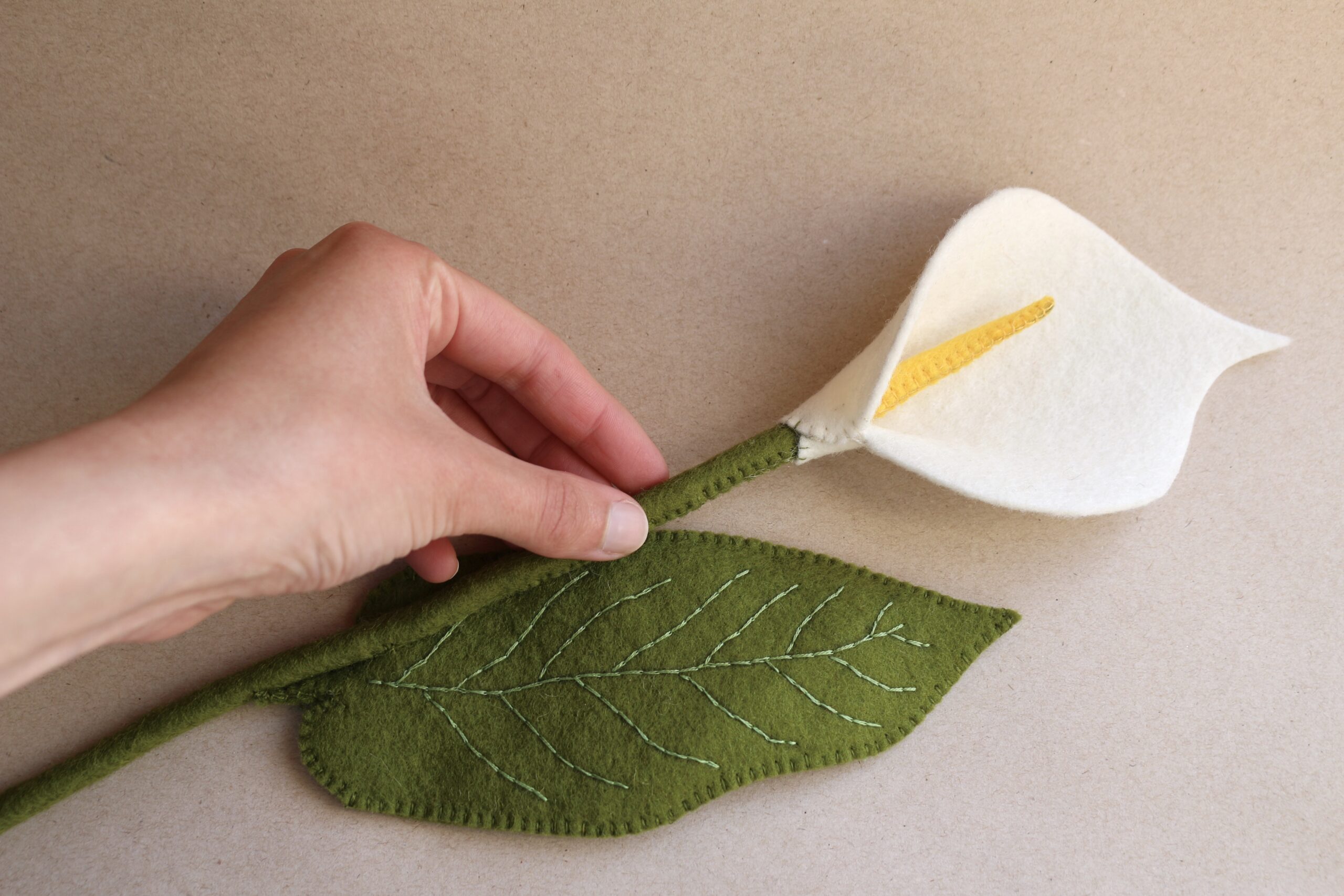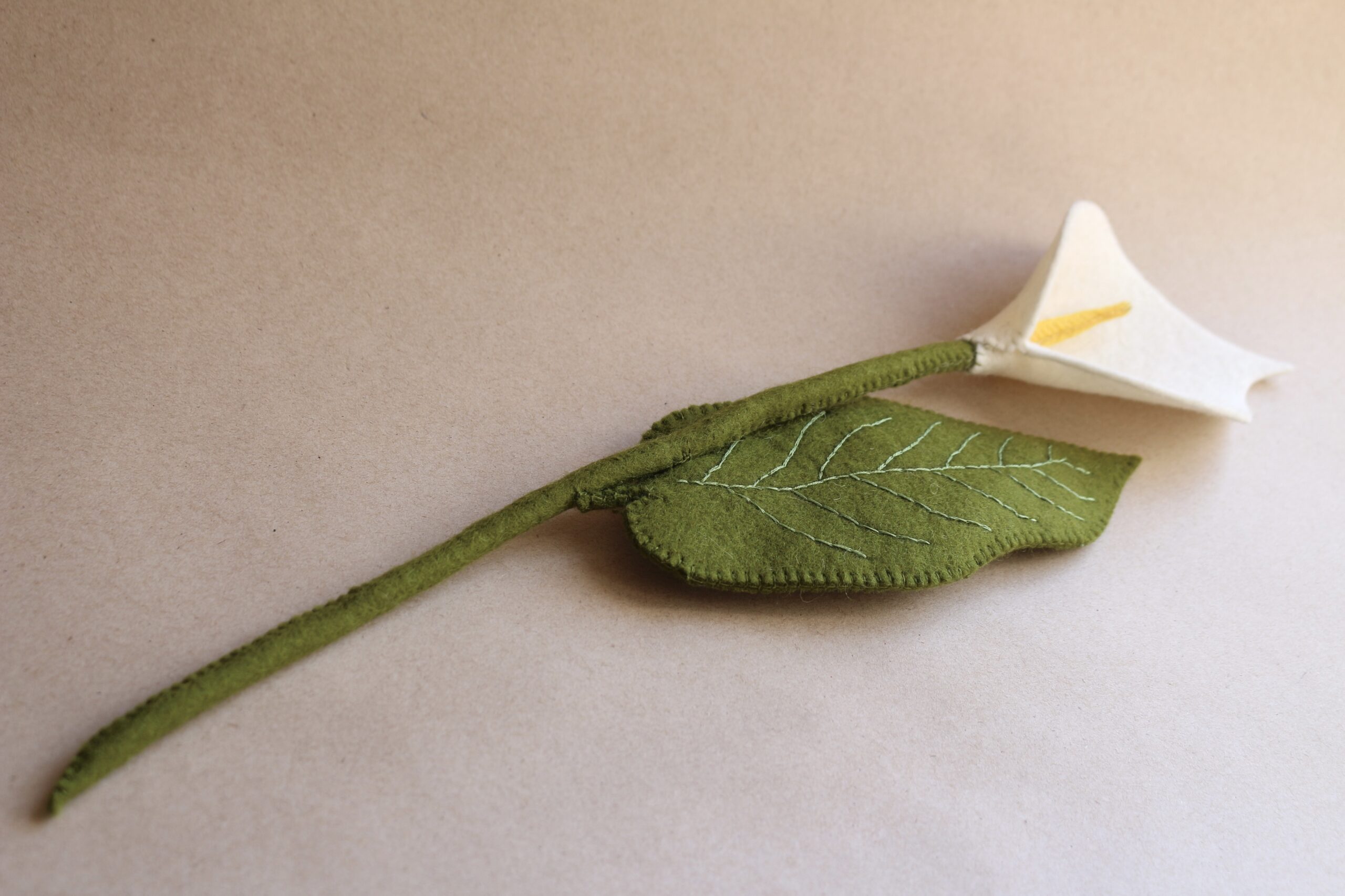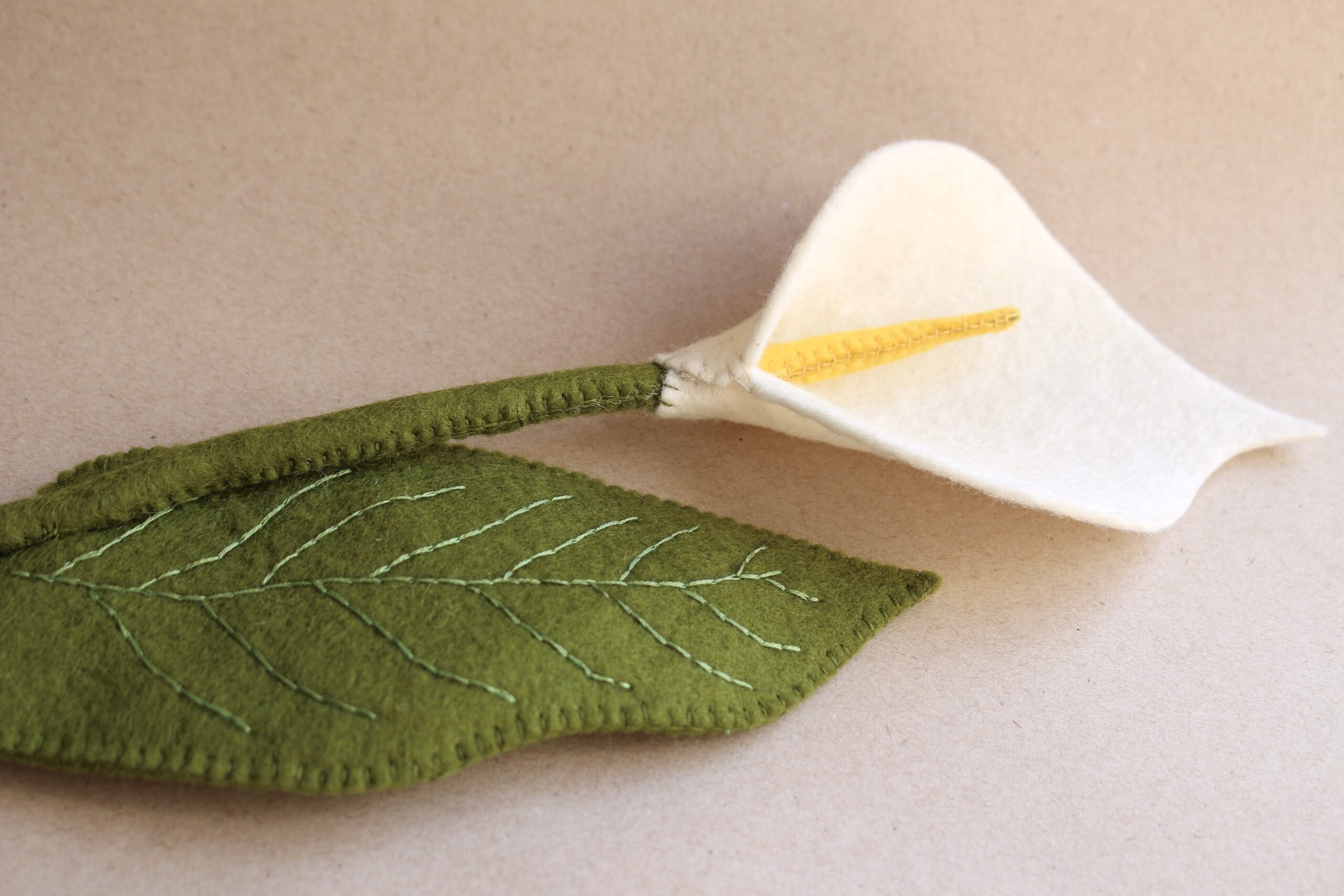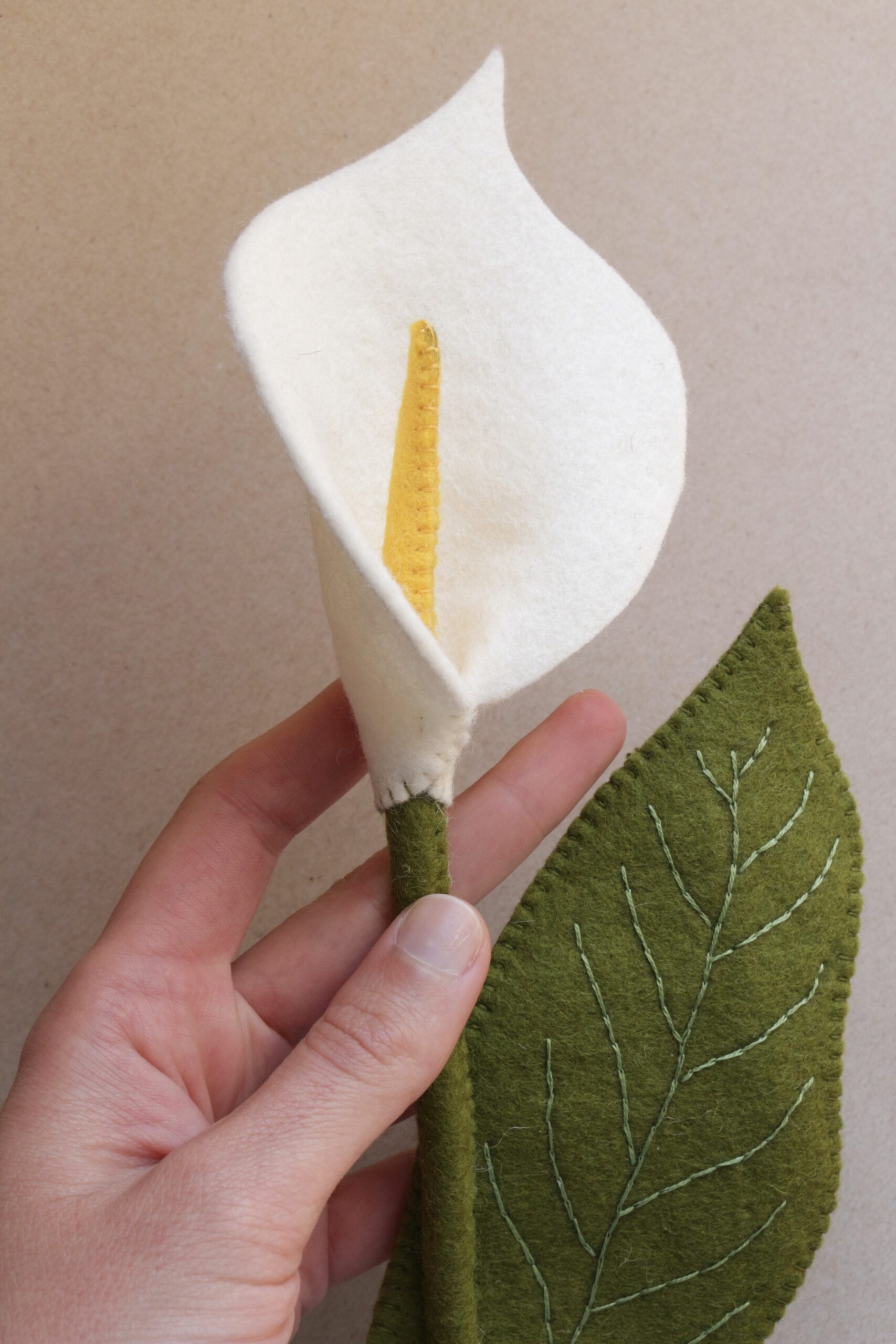 Offrez une fleur en feutrine pour la fête des mères. L’arum blanc est de saison mais celui-ci sera éternel! À poser sur un meuble ou à accrocher au mur (à l’aide d’une petite boucle cachée derrière) cette fleur en feutrine fait-main sera un élément de décoration poétique et unique!