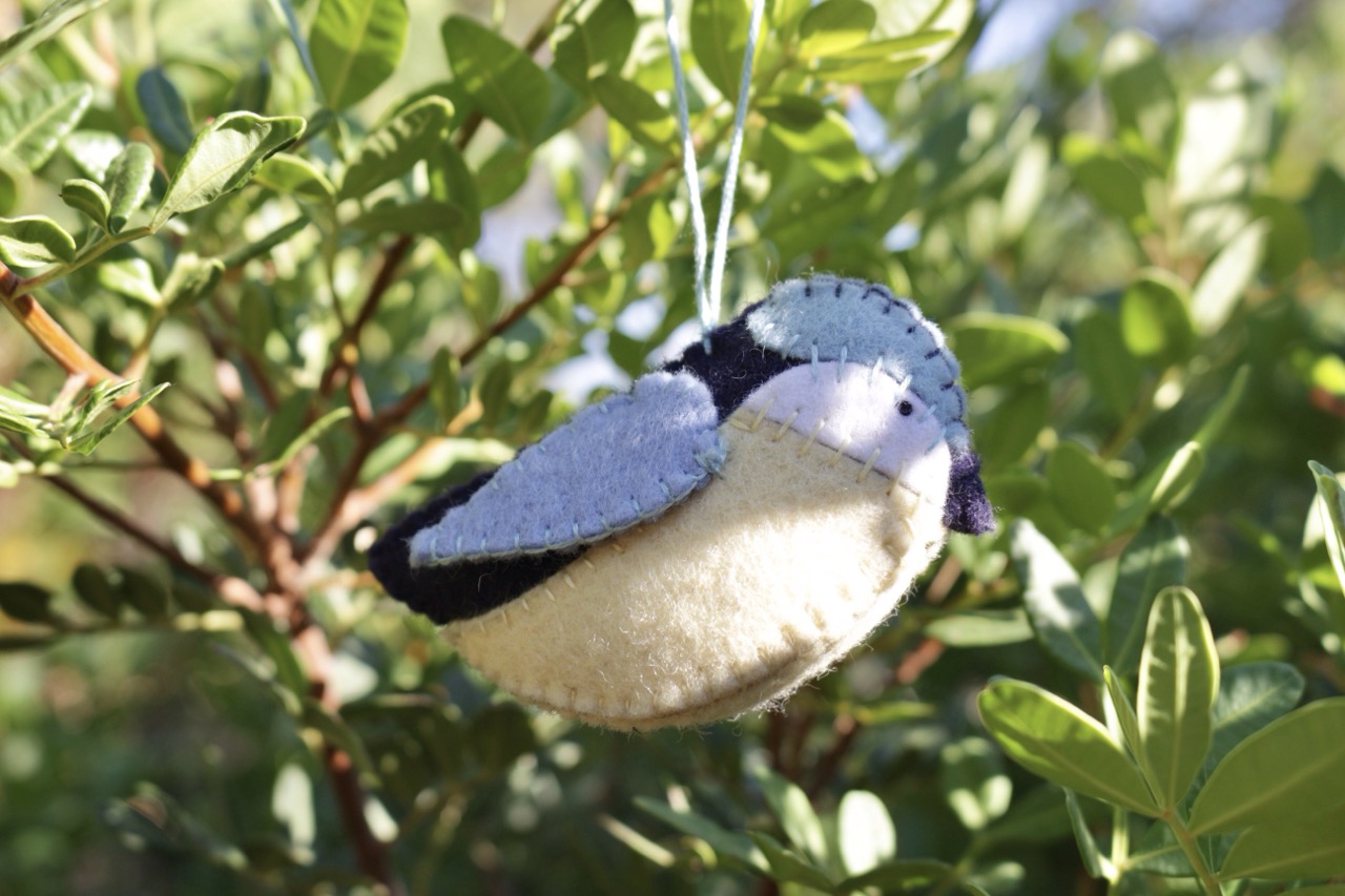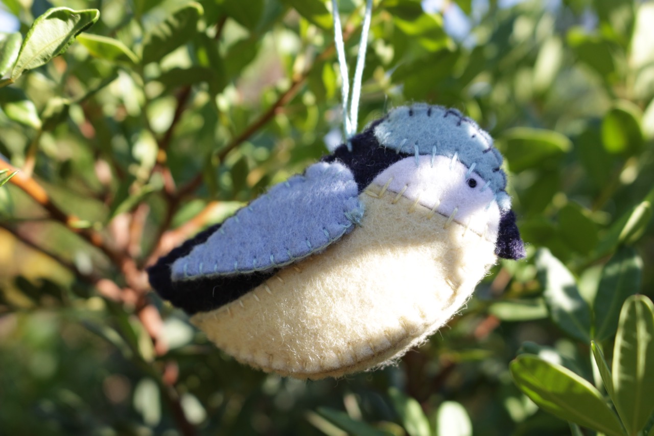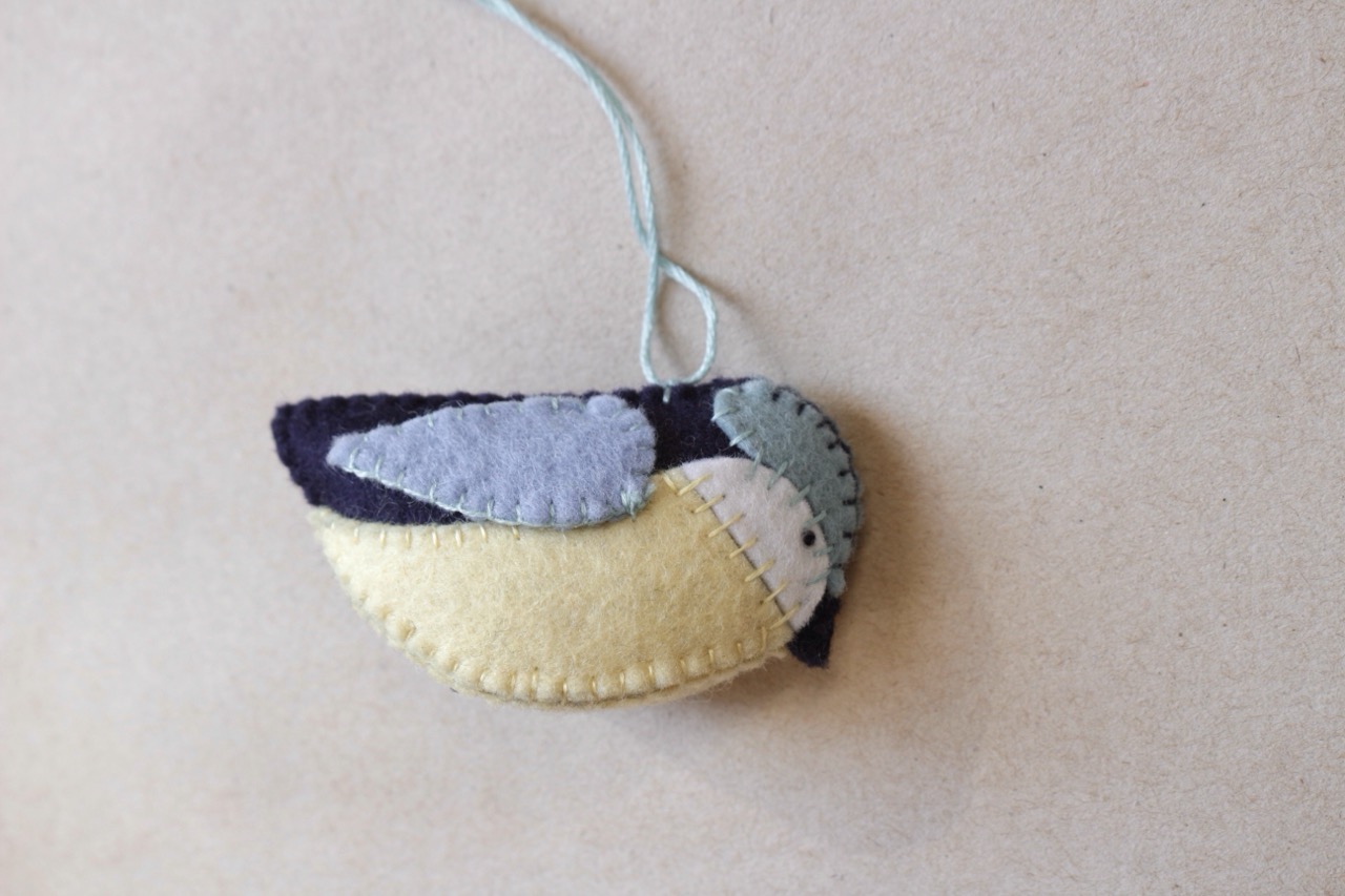 La mésange bleue en feutrine Balberg shop est une suspension pour décorer la table des saisons, la chambre de l’enfant, le sapin de Noël…