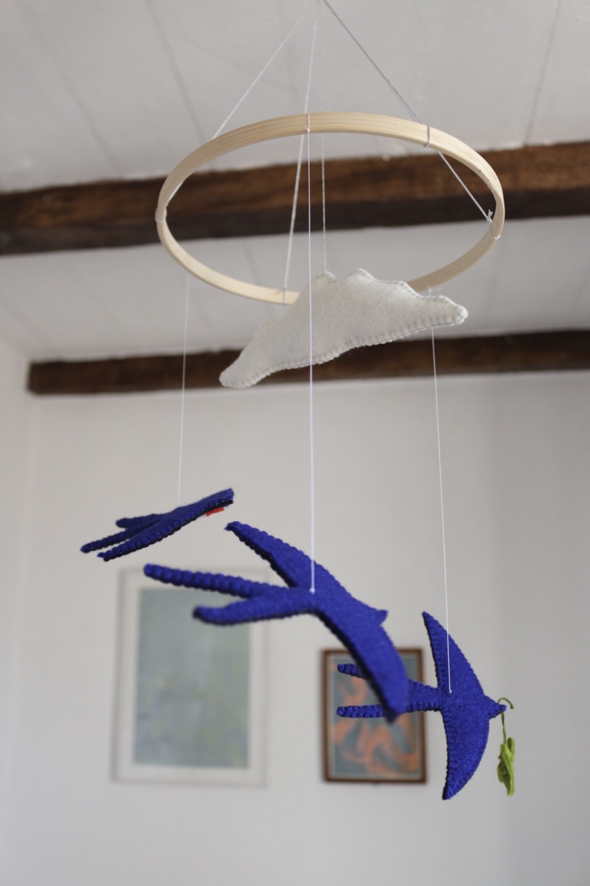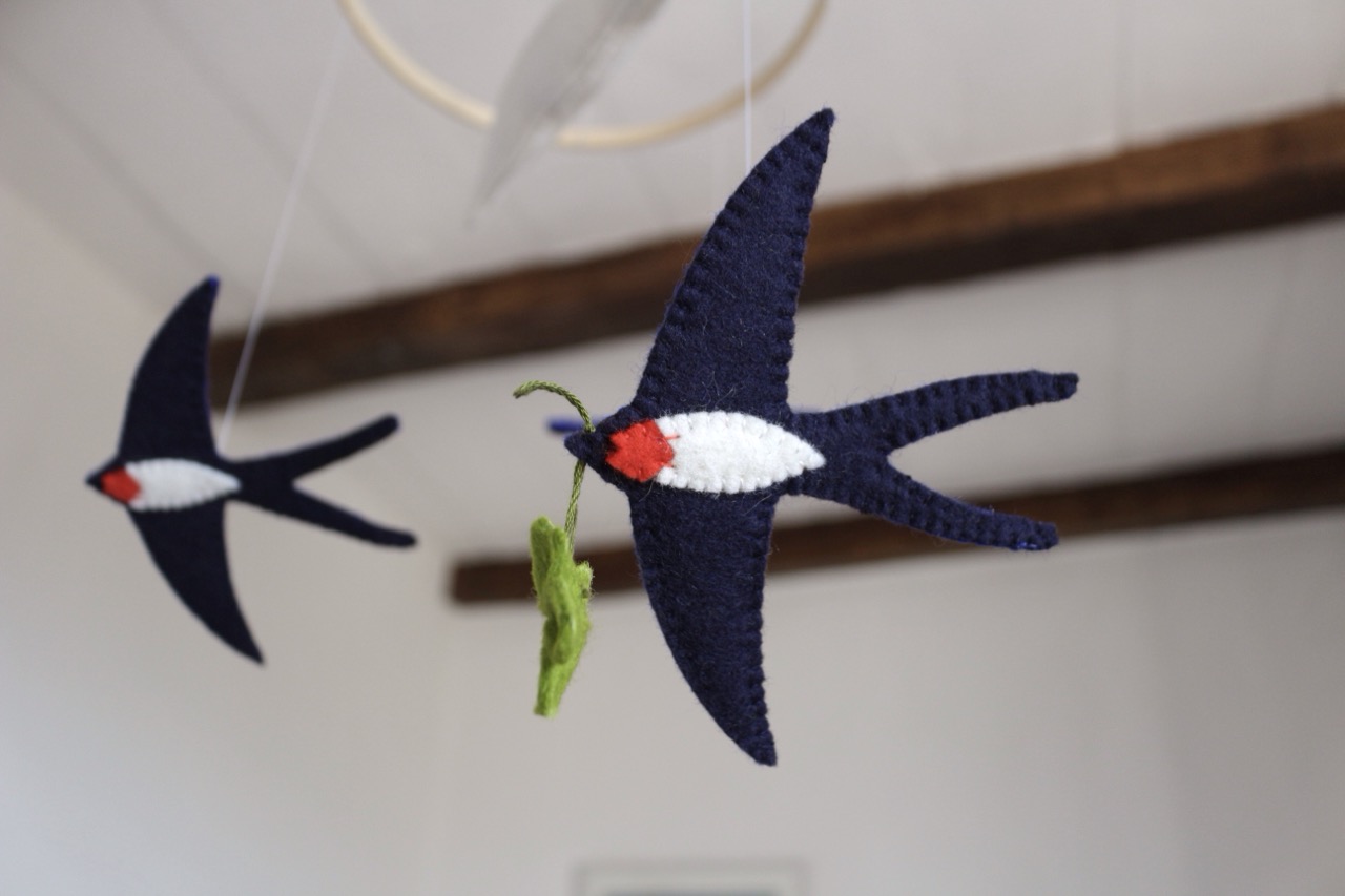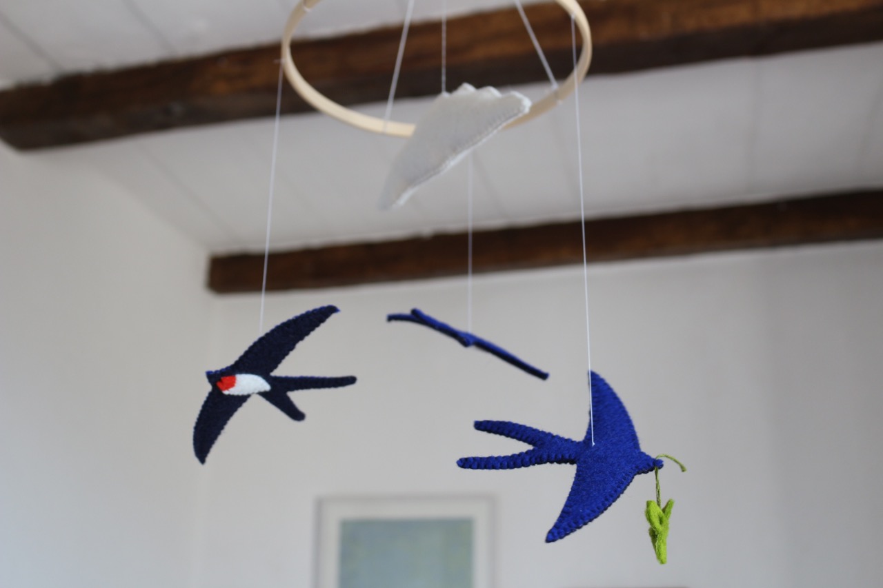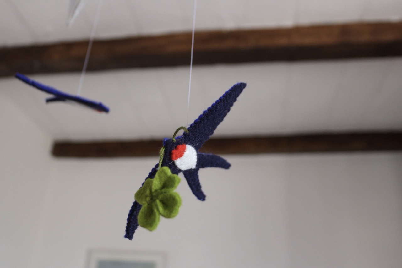 Mobile en feutrine • le trèfle à quatre feuilles et les trois hirondelles