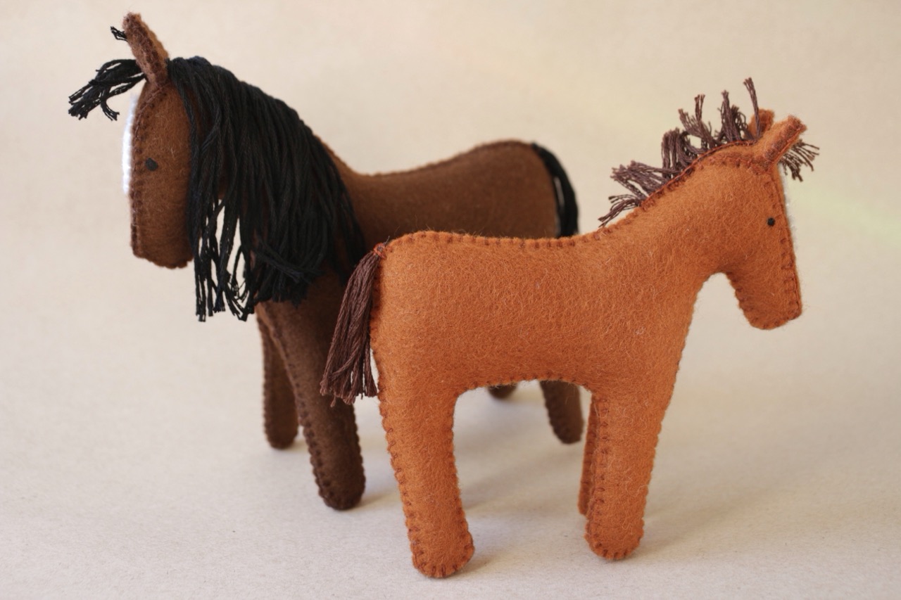 Poulain: Longueur: de la tête à la queue 12 cm. Hauteur: des oreilles au sabot 13 cm. Épaisseur ≈ 3 cm.